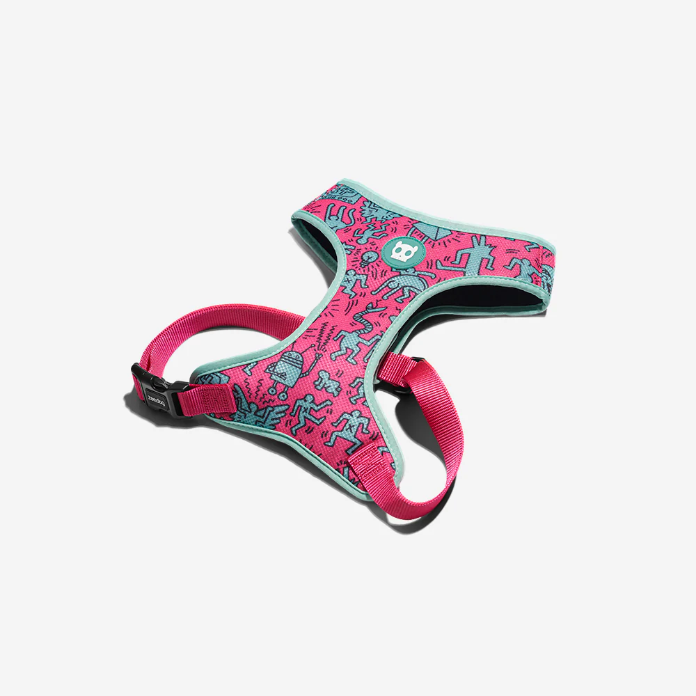 The 84 Crew Air Mesh Plus Harness for dogs is part of the Keith Haring x Zee.Dog Artist edition. Made of a lightweight breathable mesh fabric, this chest harness is soft on fur and fully adjustable around the girth. The buckle is built with a 4-point locking system for extra safety.