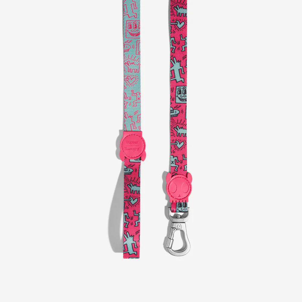 The 84 Crew Dog Leash is part of the Keith Haring x Zee.Dog Artist edition. Made of soft and durable polyester, this dog leash is super soft on the hands and comes with our iconic rubber skull logo that protects the stitching. The super hook locks for an effortless and safe walking experience.