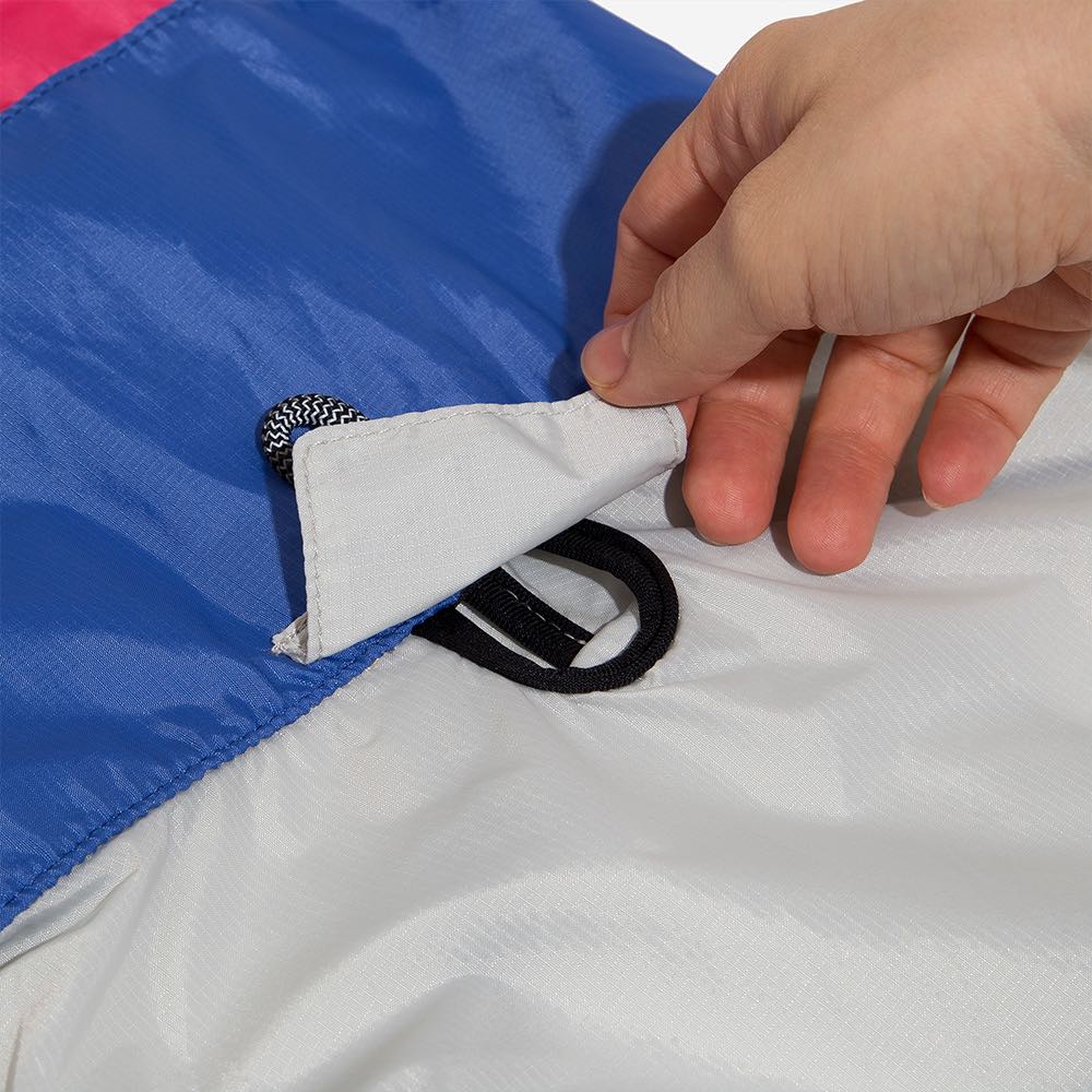 The 90's packable raincoat for dogs is made from ripstop material which makes it super water resistant. This packable raincoat is lightweight, practical and compact. It can be folded into one of its own internal pockets. The raincoat is adjustable with straps on the top and bottom. It is also super to easy to put on and take off and sits perfectly on your dog's body. The reflective strips add visibility at night. Available in sizes S, M, L, XL.