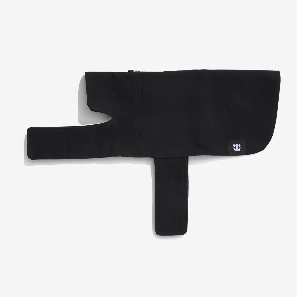 The Black Coat is a lightweight, comfortable, and durable dog coat designed for everyday wear. Made from cotton duck fabric with soft corduroy around the neck, this dog jacket keeps your dog protected without overheating. It features mesh padding for added comfort, adjustable Velcro straps for an easy fit, and a top zipper for quick harness access. This easy to put on and take off coat is perfect for small, medium, and large dogs who need a stylish layer for cooler days.