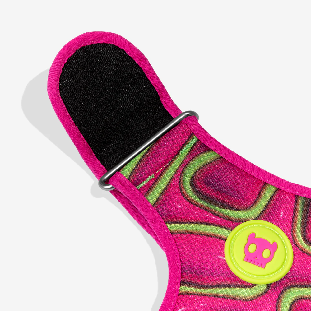The H3D Jelly Adjustable Air Mesh Harness is a lightweight, breathable mesh chest harness that's soft on fur and fully adjustable around the neck and girth. Part of the House of 3D collection, this dog harness has a strong, sturdy buckle and has a d-ring for a leash.
