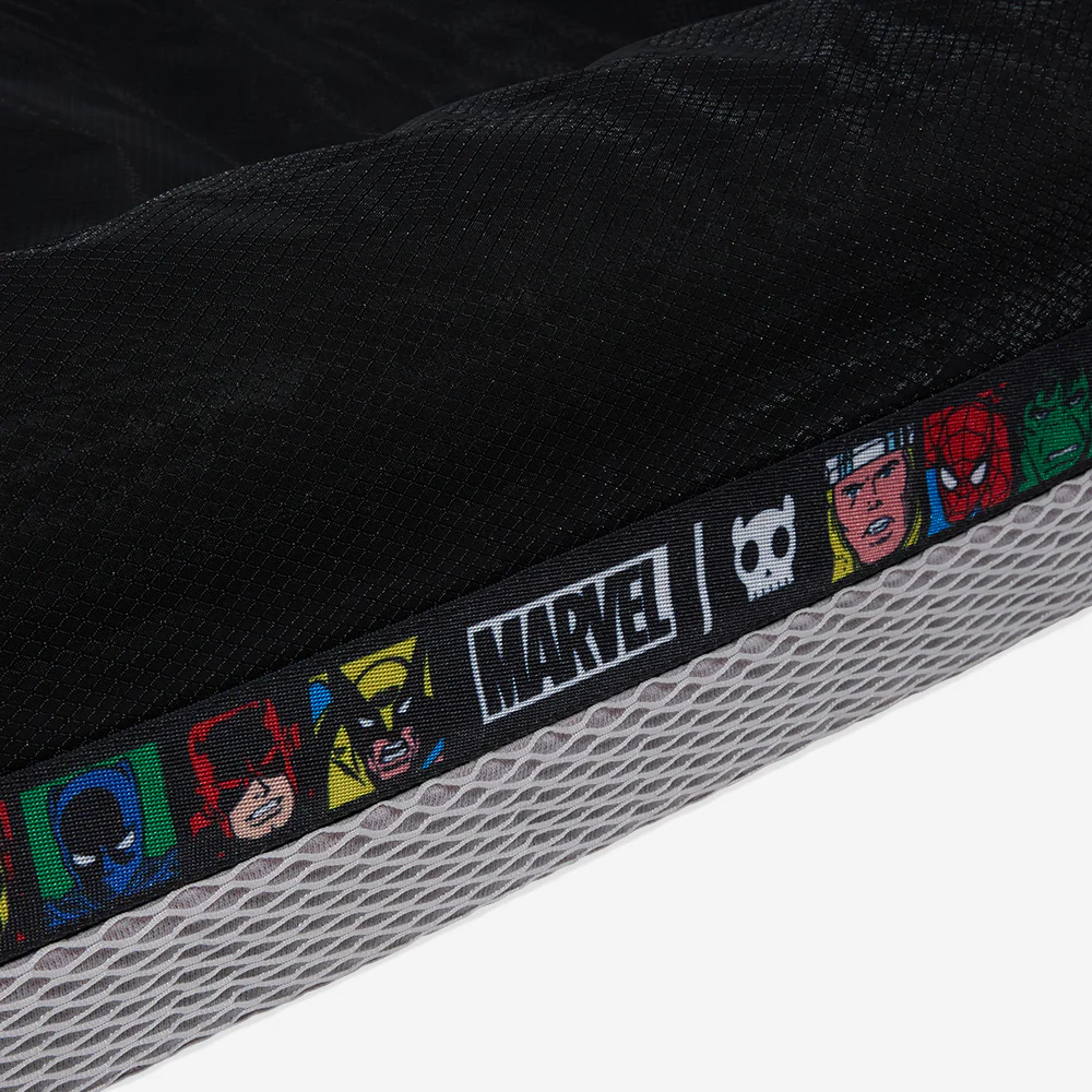 The Marvel Heroes Zee.Bed is a limited edition, 100% memory foam dog bed that's part of the Marvel | Zee.Dog collection. Featuring all your favorite superheroes and the vintage Marvel logo, this bed has a ripstop bed cover that's easy to clean and won't scratch easily. The base of the bed has breathable mesh.