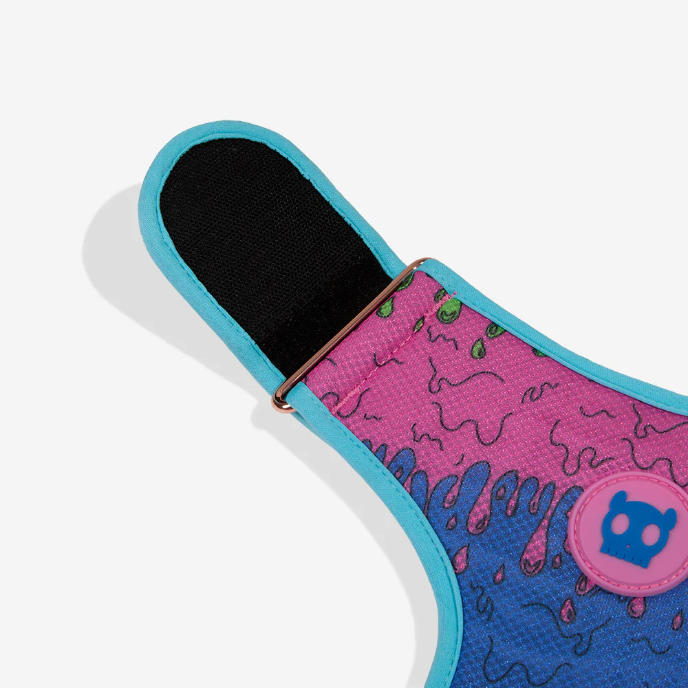 The Melted Adjustable Air Mesh Harness is a lightweight, breathable mesh chest harness that's soft on fur and fully adjustable around the neck and girth. Part of the Lords of Zee.Town collection, this dog harness has a strong, sturdy buckle and has a d-ring for a leash.