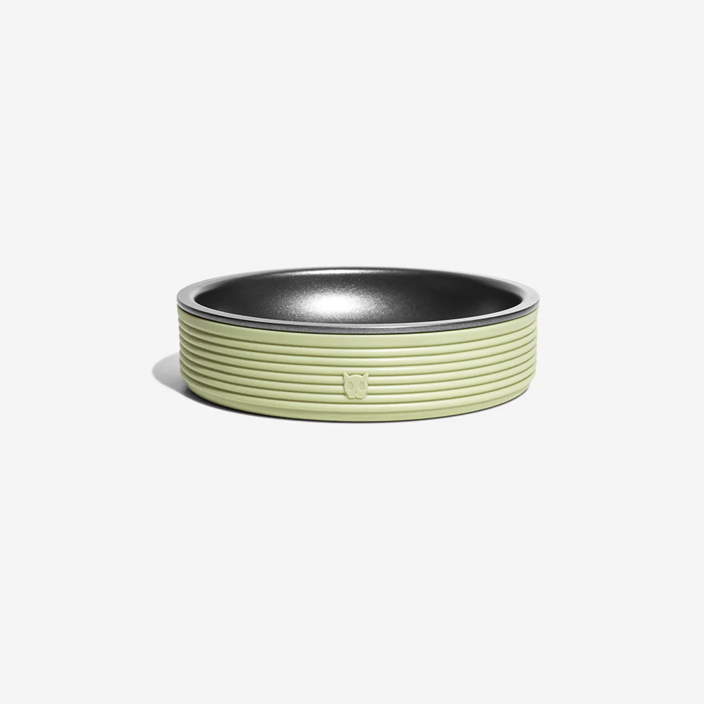The Olive Duo Bowl was designed to enhance your cat's meal experience. This whisker-friendly cat bowl has a non-stick dish that's dishwasher safe (top rack) and has a rubber base that keeps the bowl from slipping when being used.