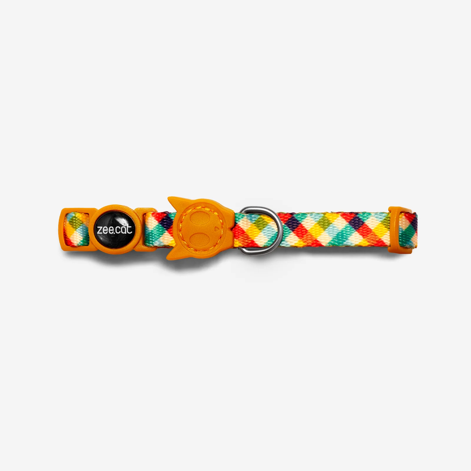 Our Zee.Cat collars are made of super soft polyester and are one size fits all. The buckle is a breakaway buckle that automatically opens if your cat gets stuck.