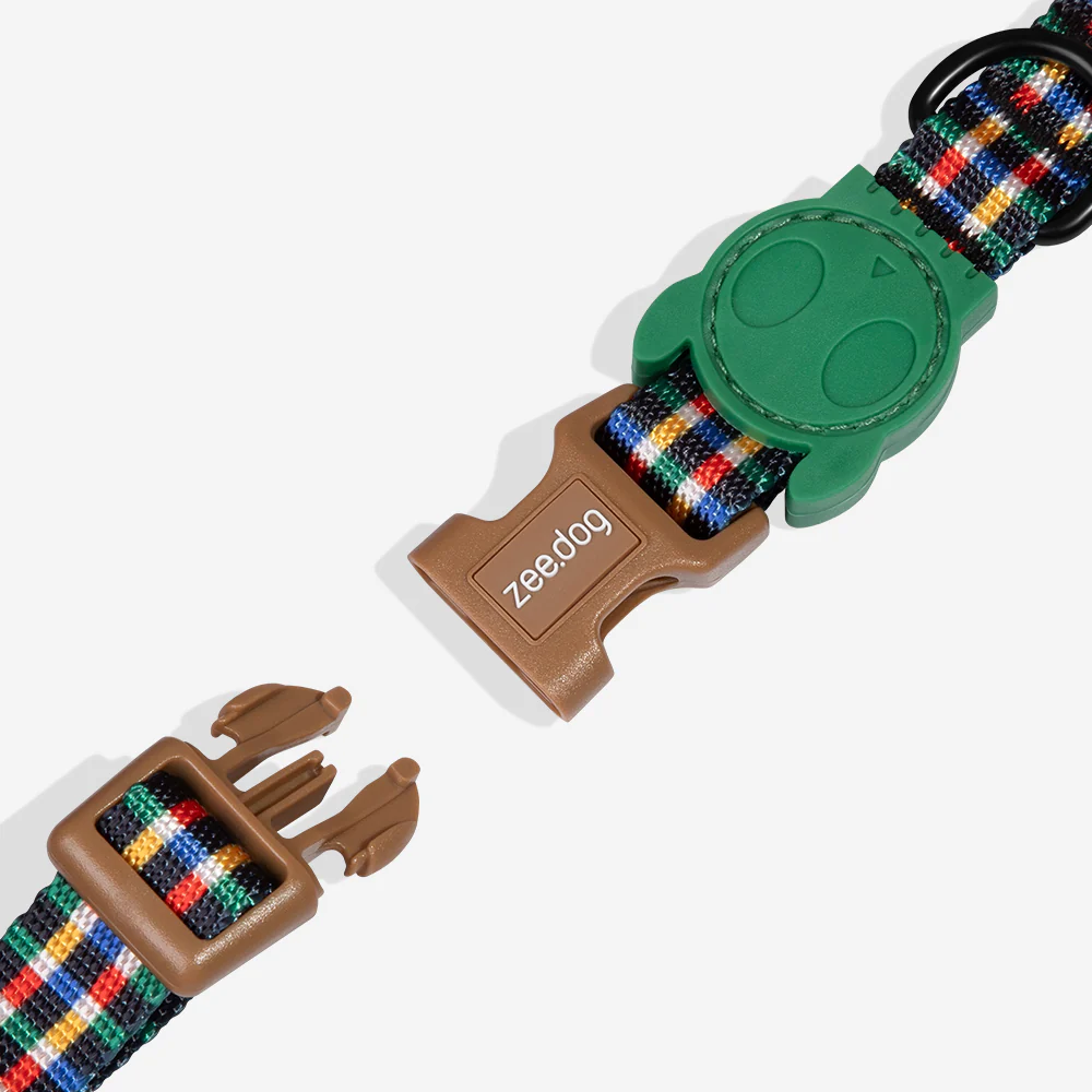 The Travis dog collar brings bold energy to everyday walks. Designed with durable polyester and Zee.Dog’s signature 4-point locking buckle, it’s built for safety, comfort, and standout style. Adjustable for the perfect fit, this collar is finished with a vibrant multicolor check pattern that makes your dog’s look pop.